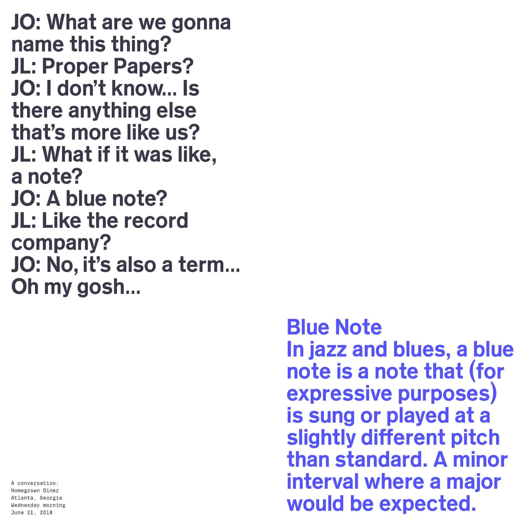 Blue Notes is a journal that gives us the opportunity to slow down and reflect on the last four months of work-life. It is a place to publish and archive our most recent concepts, interests, inspiration, ideas, sketches, pictures, outtakes, thoughts, scraps, and conversations that would otherwise go unrecorded.
